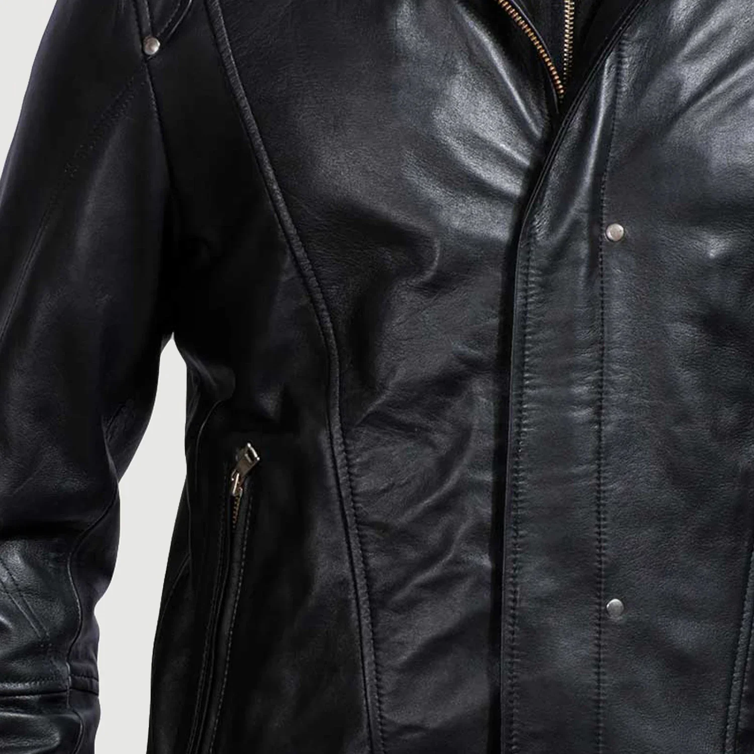 Crafted from premium-quality leather, it offers durability, comfort, and long-lasting wear. The soft inner lining keeps you warm during colder days, while the front zipper closure ensures a secure and stylish fit. Functional pockets provide convenient storage for your essentials.